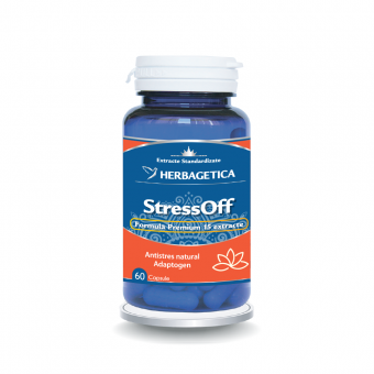 StressOff conține 15 extracte premium care acționează ca antistres natural și scad nivelul de cortizol, hormonul stresului, datorită efectelor adaptogene.