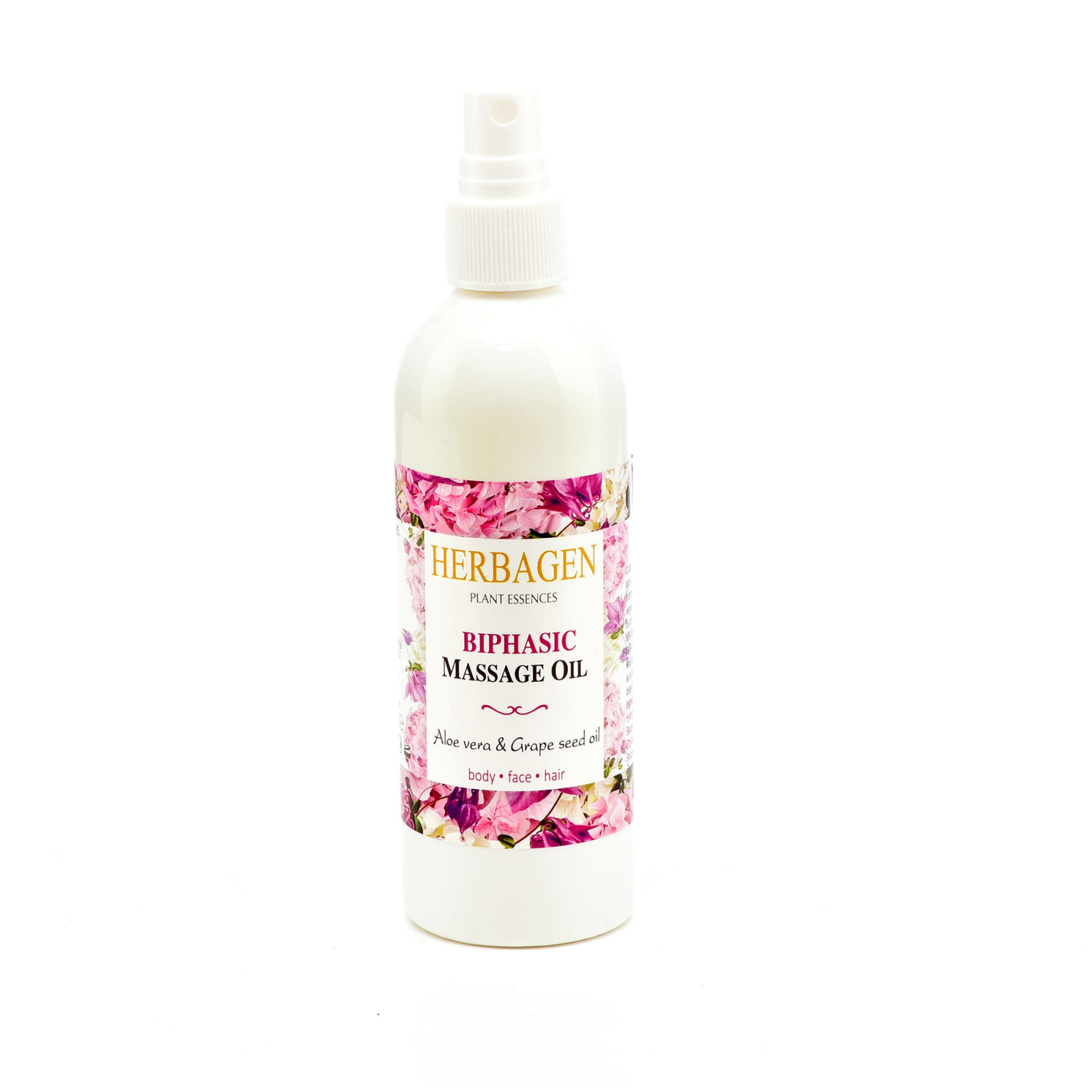 Uleiul de masaj bifazic Herbagen cu 95% substanțe de origine naturală conține ca ingrediente active ulei de sâmburi de struguri, aloe vera gel, vitamina E, care contribuie la hidratarea și hrănirea intensă a epidermei, diminuarea iritațiilor, vergeturilor și ridurilor și la tratarea vârfurilor de păr despicate.